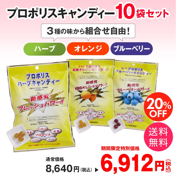 ハーブ味/オレンジ味/ブルーベリー味 66g(30包) 10袋