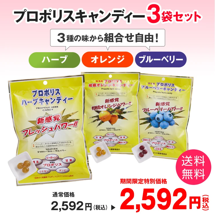ハーブ味/オレンジ味/ブルーベリー味 66g(30包) 3袋