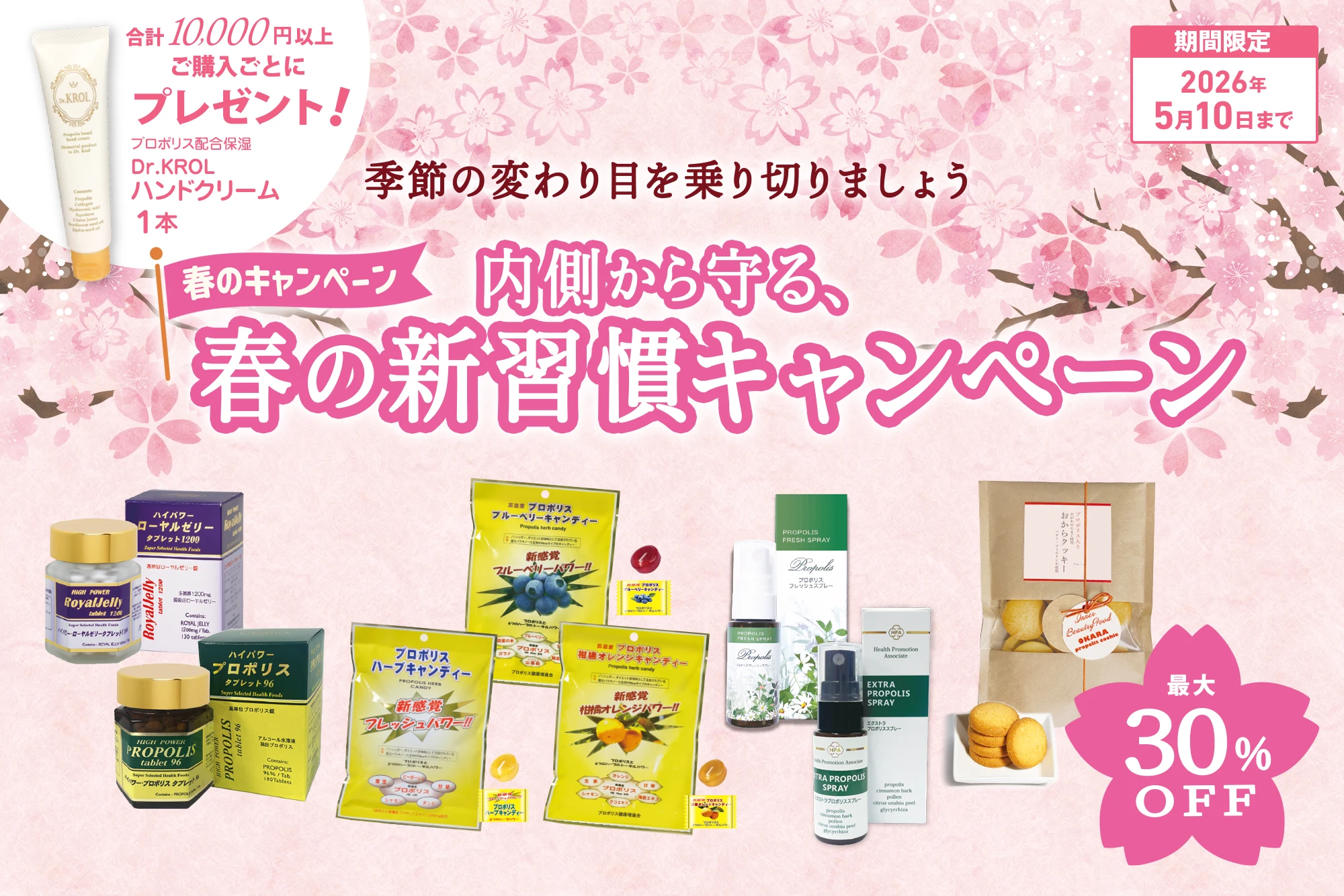 キャンペーン商品合計10,000円以上ご購入ごとに、「Dr.KROLハンドクリーム(プロポリス配合保湿)」を1本プレゼント!